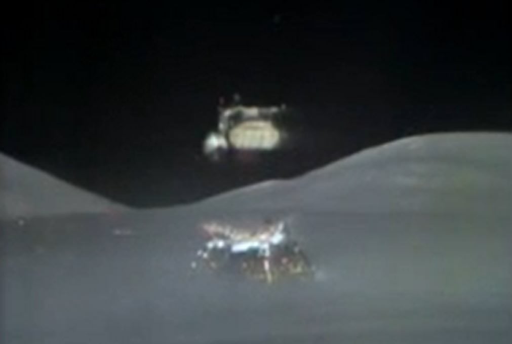 That was the plan, at least. On Apollo 15, the tilt mechanism malfunctioned and the camera never moved upwards, allowing the lunar module to slip out of sight. And while the attempt on Apollo 16 gave a longer view of the lunar module rising up, the astronauts actually parked the rover too close to it, which threw off the calculations and timing of the tilt upwards so it left view just a few moments into the flight.
